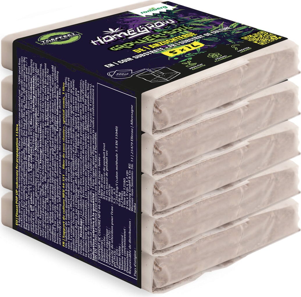 Conteúdo: 5 x 1 litro de substrato de cultivo, comprimido