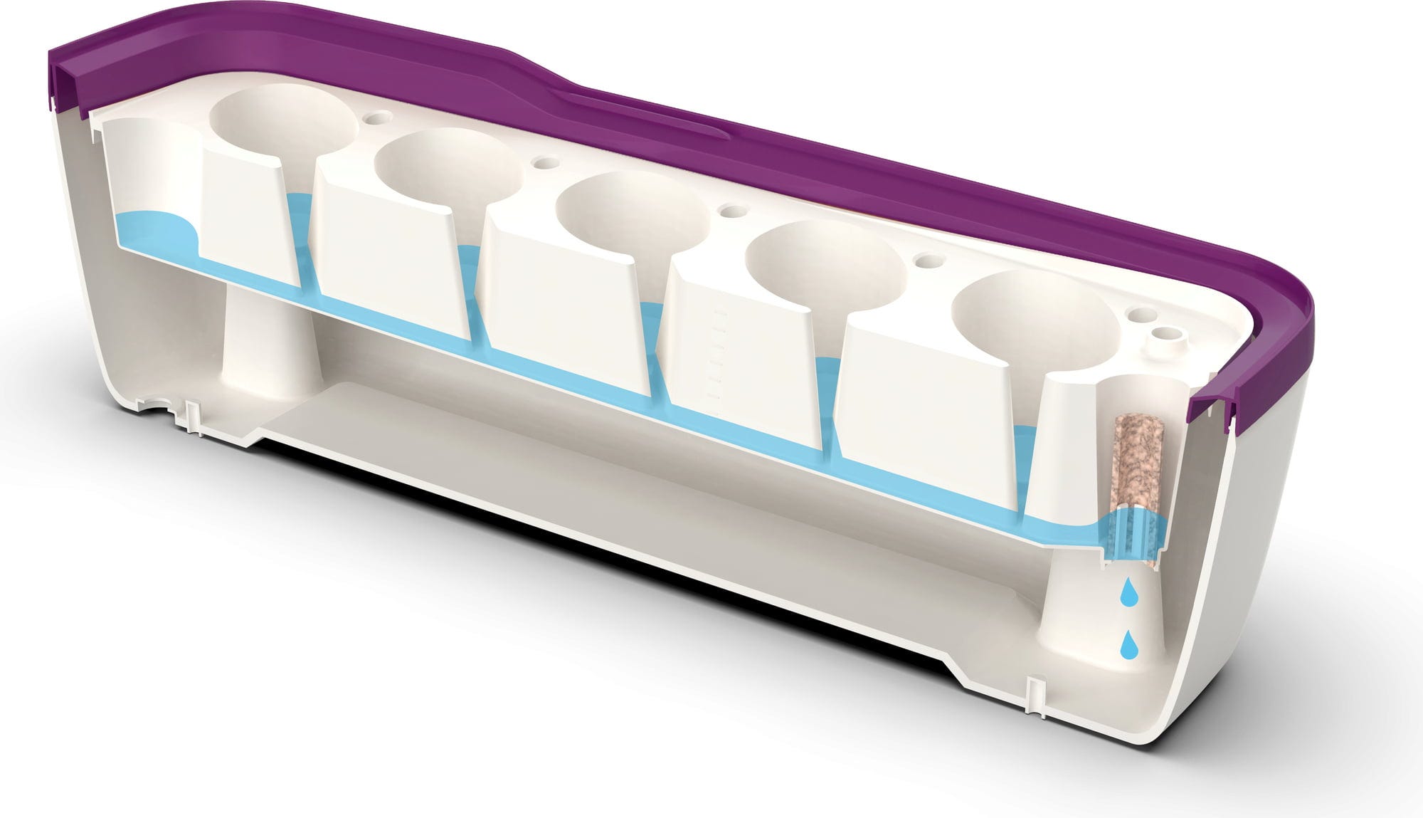 A tecnologia de rega inteligente com o sistema Water-Stop perdoa qualquer erro de rega. Canais e cavidades integrados apoiam uma distribuição uniforme da água. A proteção contra o encharcamento torna impossível regar em excesso. Para a rega, existe também a prática abertura de rega, que permite cuidar das suas plantas com a tampa fechada. Se o BoQube for utilizado como floreira, retira-se um pequeno tampão no tabuleiro para que o excesso de água da chuva e da rega possa sempre escoar.