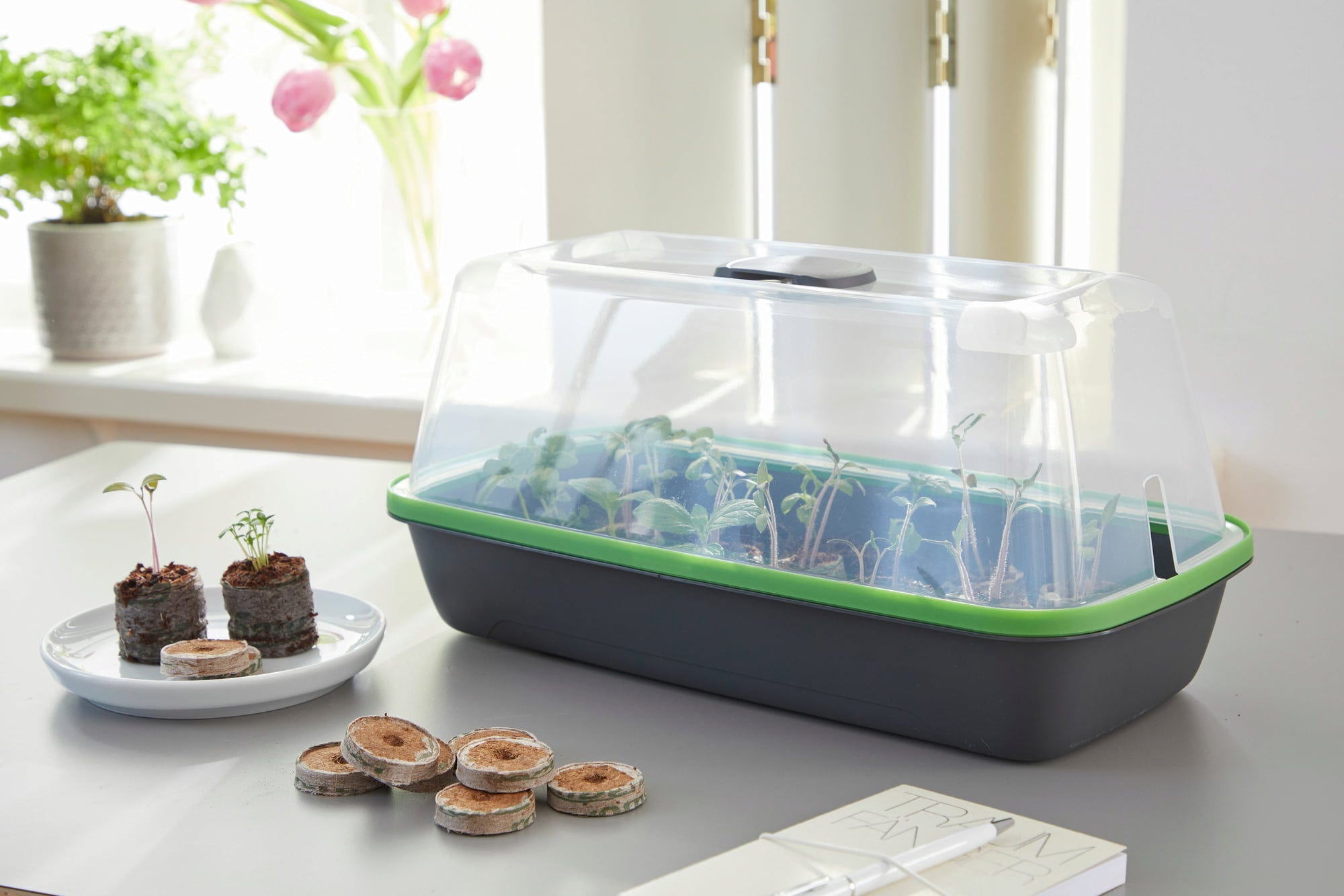 A tampa de germinação M em Antracite é a combinação ideal com o Tabuleiro de Germinação BoQube M.