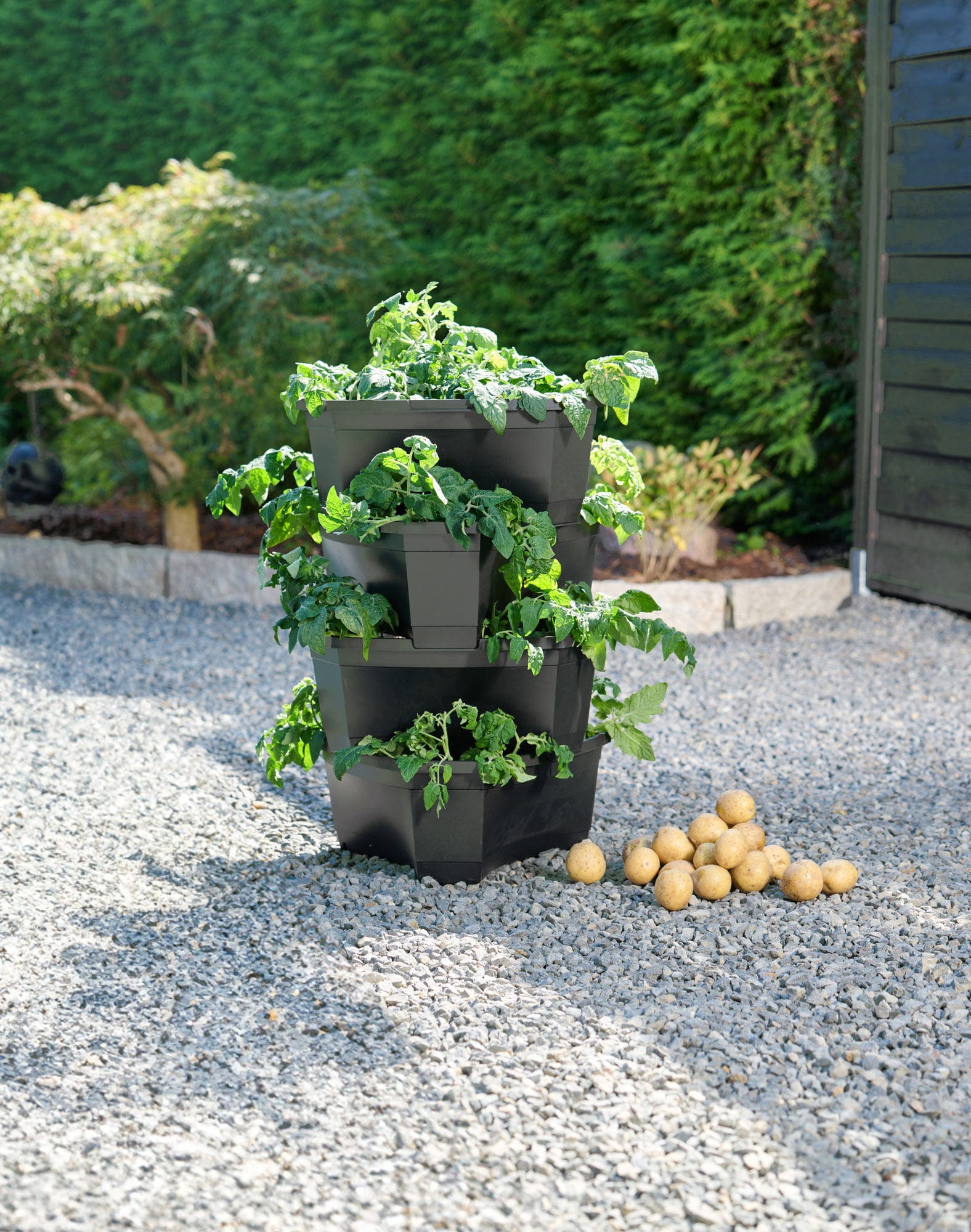 Aqui os seus vegetais crescem em altura em vez de largura. Com esta fantástica torre de plantação, pode tornar-se um(a) feliz (pequeno/a) jardineiro(a) mesmo no espaço mais reduzido e cultivar os seus próprios vegetais deliciosos. Quatro níveis esperam para serem plantados por si com os seus vegetais favoritos. Ou que tal batatas cultivadas por si? Estas também prosperam magnificamente nesta torre de plantação e poderão ser colhidas por si em breve.