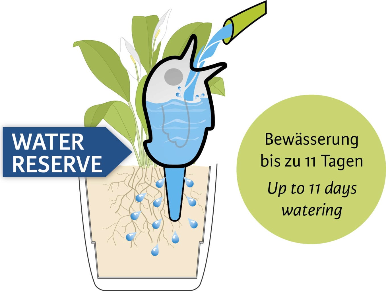 Este simpático pássaro em plástico é mais do que uma simples decoração bonita. Basta enchê-lo com água e colocá-lo na terra, e ele fornecerá humidade de forma fiável aos teus favoritos verdes. Seja na varanda, no terraço, no jardim ou até na sala de estar – o Bördy adapta-se a qualquer lugar e garante que as tuas plantas recebem sempre água suficiente.