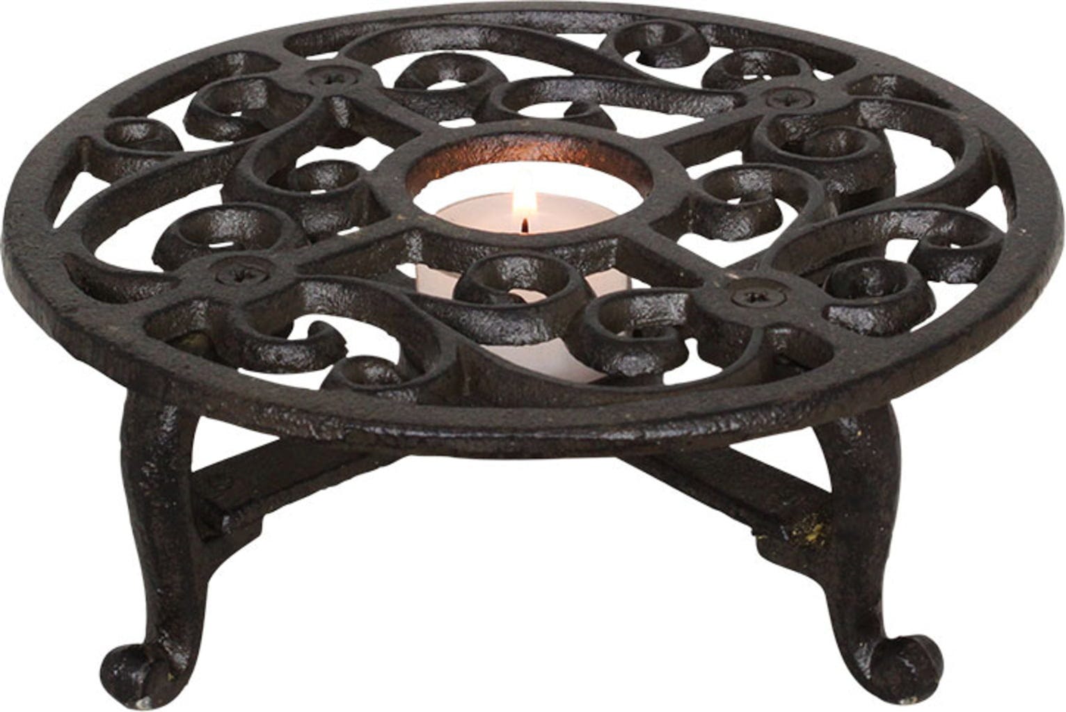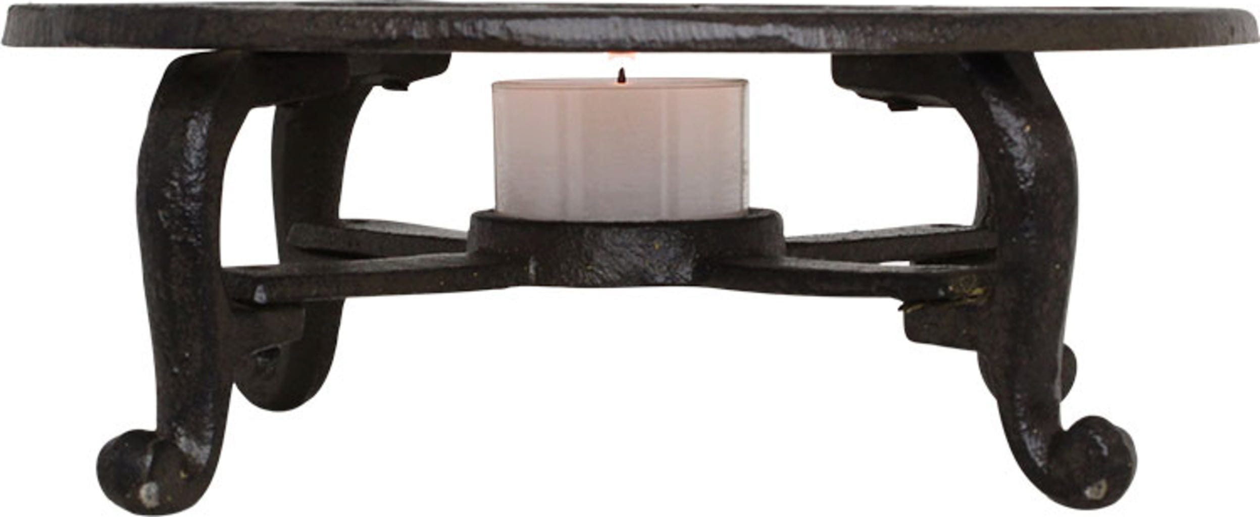 Esta Base rústica em Ferro Fundido robusto foi concebida para manteres as tuas Bebidas e Refeições quentes por mais tempo. No centro, encontras um espaço reservado para uma Vela de Chá. Recipientes resistentes ao calor, como Panelas ou Bules, podem ser apresentados de forma decorativa com esta Base.