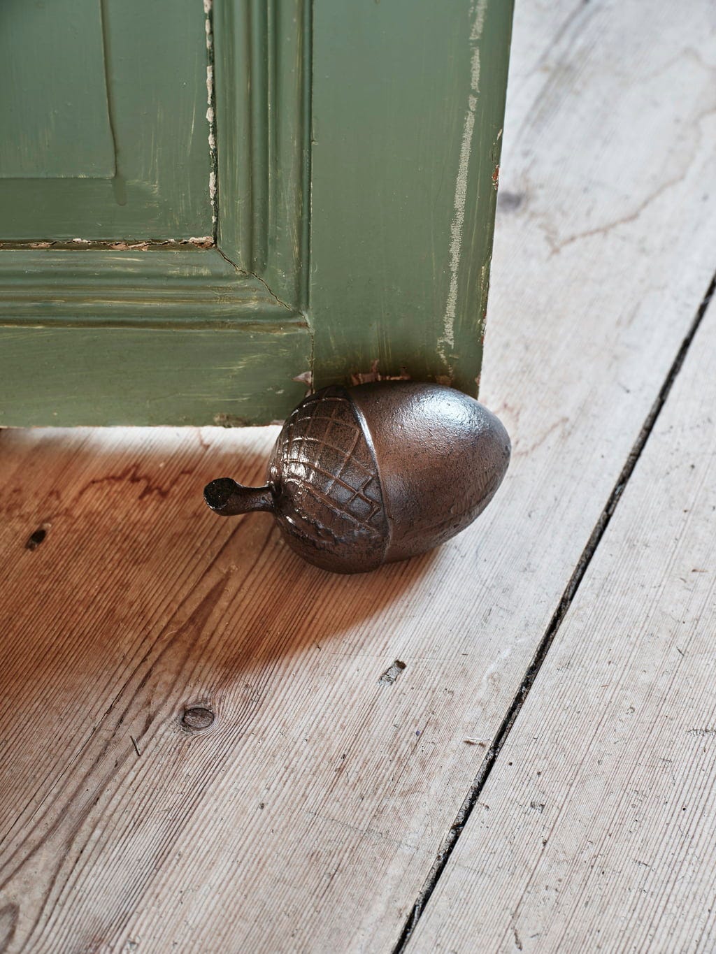 Um Batente de Porta em forma de Bolota com um design detalhado. Não é apenas um elemento de destaque na tua Casa, mas também um ajudante prático. Fabricado em Ferro Fundido, o que o torna especialmente robusto e duradouro.