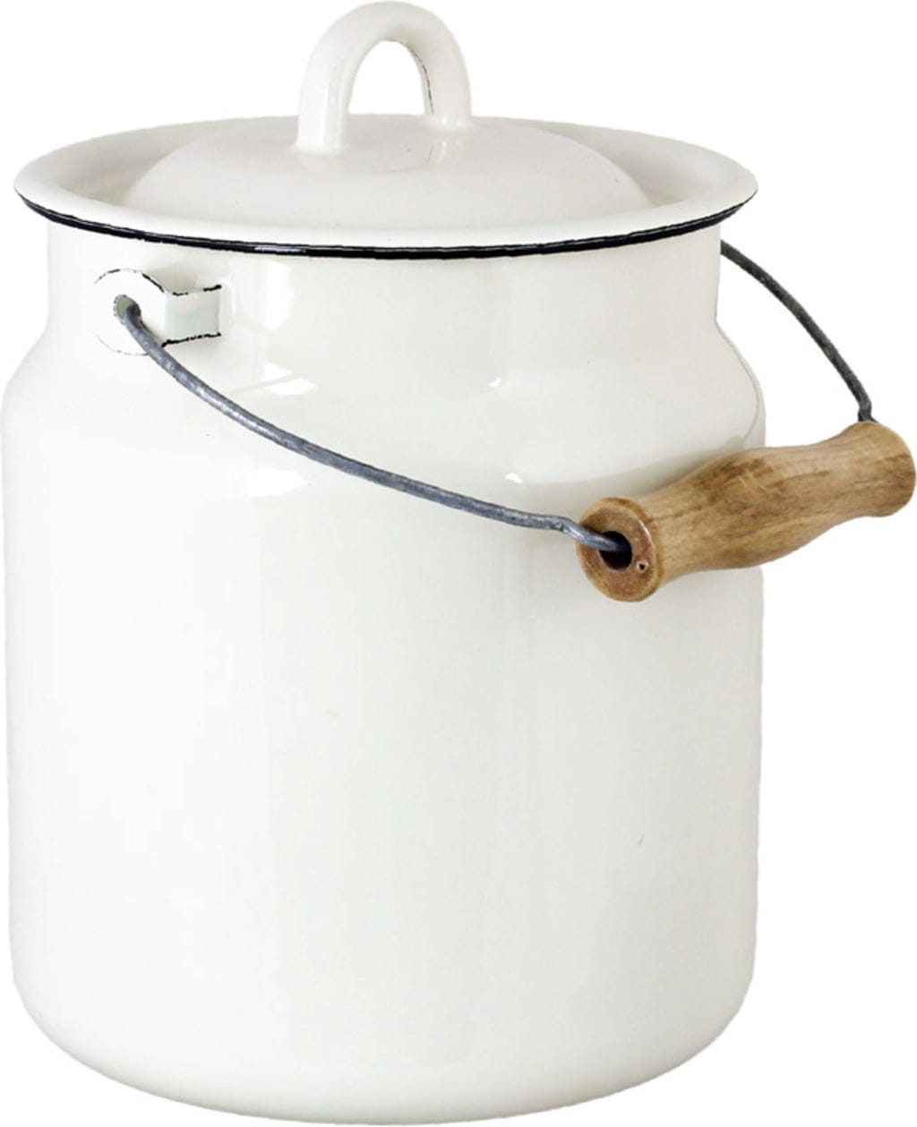 As gerações antes de nós sempre o fizeram assim - é ideal para ires buscar até 3 Litros de Leite fresco ao produtor. Mas também podes transportar maravilhosamente Sopas, Bagas ou Ponche. A pega de Metal com o confortável Punho de Madeira garante isso mesmo. Para não derramares nada, basta colocar a Tampa.