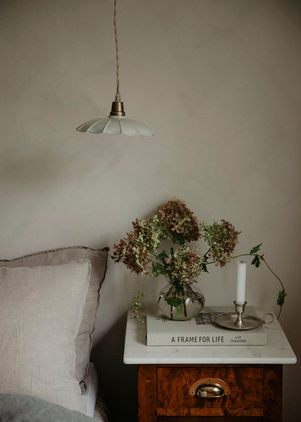 A base com acabamento em Latão cria um belo contraste com o abajur de Metal lacado. O cabo é feito de Tecido e tem um comprimento ideal de 150 cm.