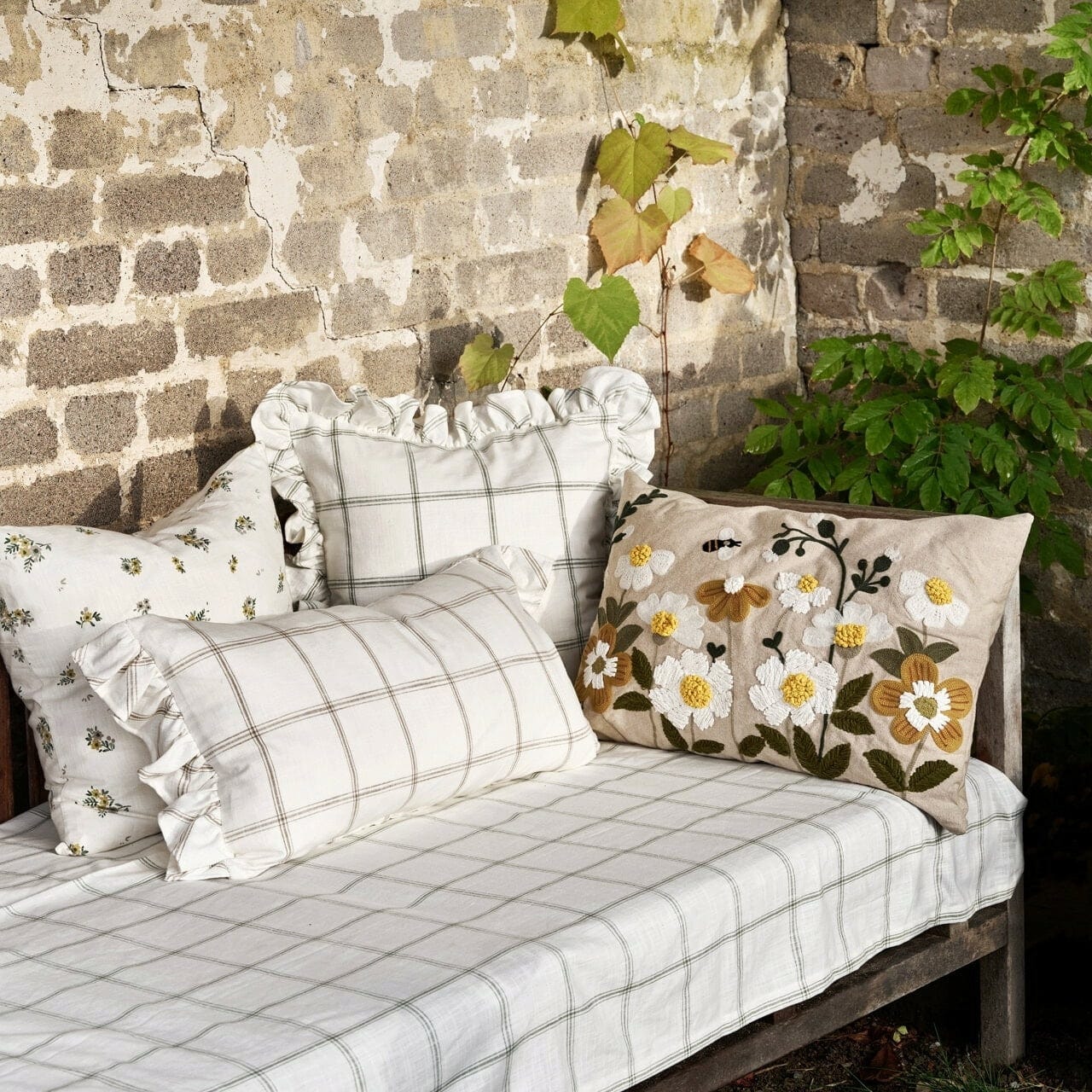 Capa de Almofada Floral em 100% Algodão com flores bordadas e um fecho de correr oculto na parte inferior. A estrutura variada cria uma sensação de Aconchego, sendo ideal para dares um novo visual aos teus lugares de descanso.