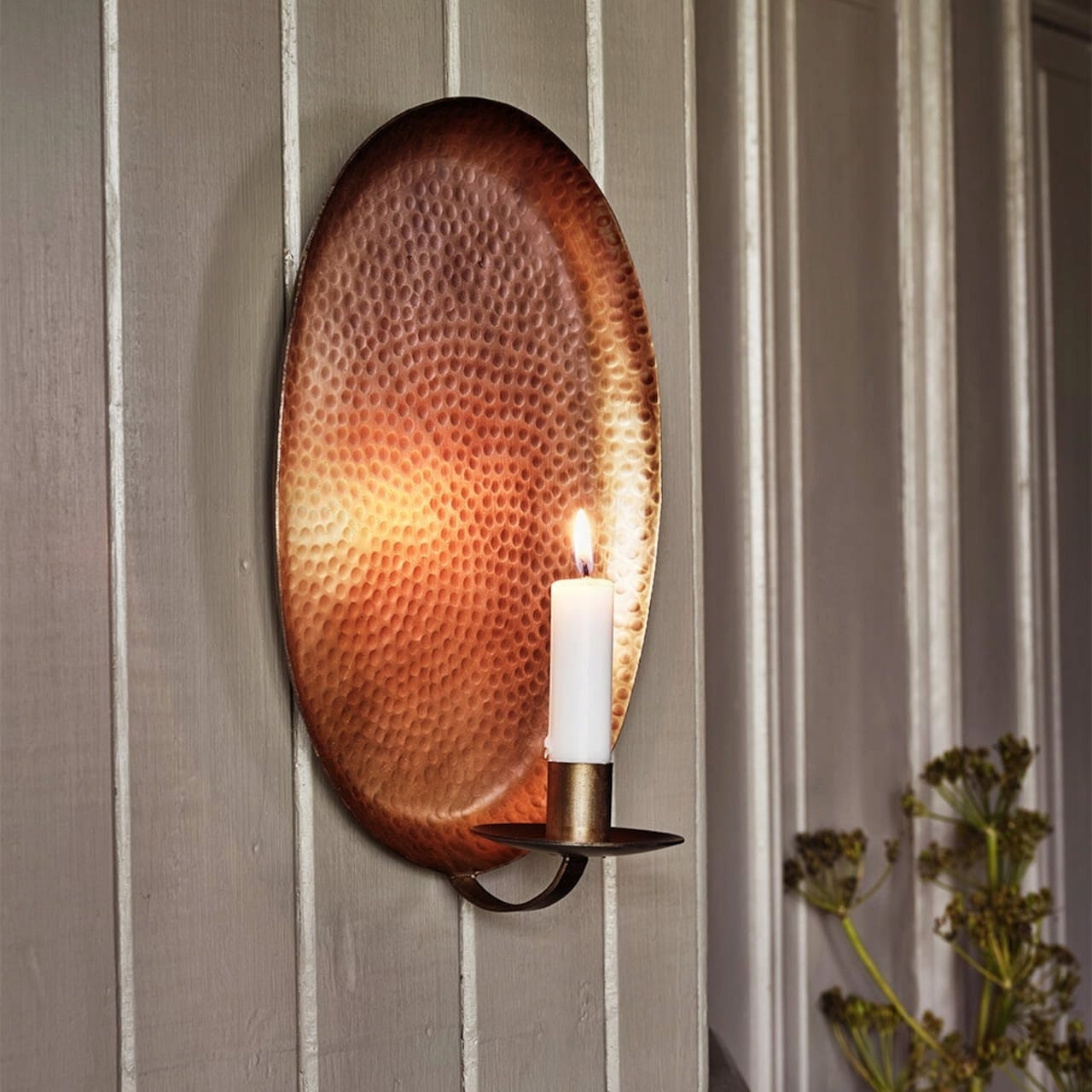Este maravilhoso Castiçal pode ser montado na parede, tornando-se um Destaque especial na tua Casa. A parte traseira em Metal Martelado reflete o brilho da vela de forma deslumbrante, criando simultaneamente um Ambiente Aconchegante. O acabamento em Latão Antigo é especialmente belo, conferindo elegância sem ser excessivo.
