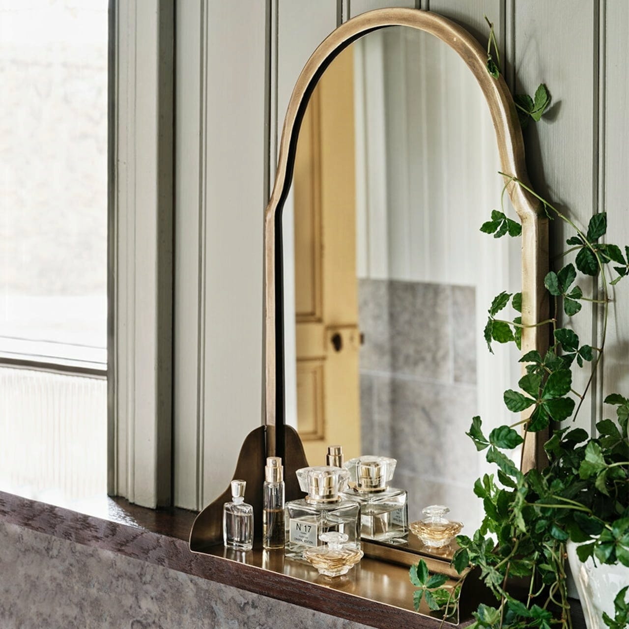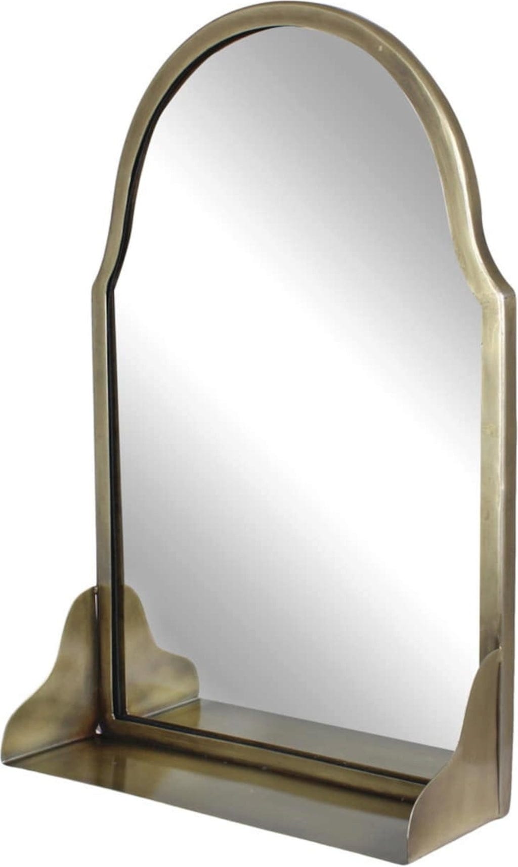 Este Espelho de formato elegante com um Look Vintage Antigo adapta-se perfeitamente à tua Casa de Banho ou ao Corredor, graças às suas dimensões ideais e à Prateleira prática. Também transforma o teu Toucador num verdadeiro Destaque. A Moldura é fabricada em Metal e possui um Acabamento em Latão elegante. A Prateleira é excelente para colocares os teus Produtos de Cosmética, Perfumes, Plantas ou outros pequenos Objetos.