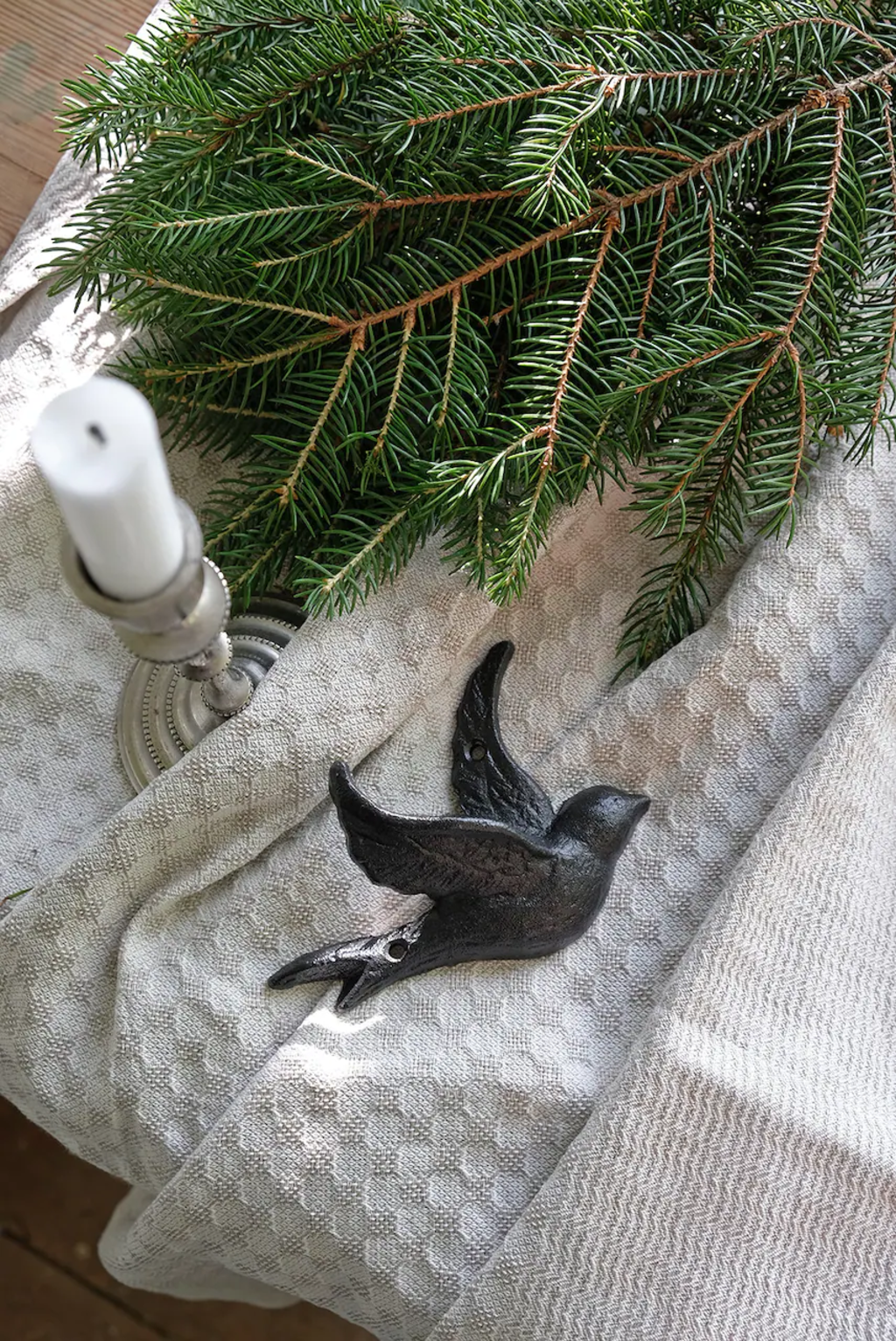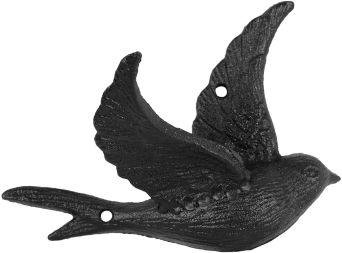Este pequeno Pássaro em Ferro Fundido mantém uma das suas asas na posição ideal para que possas pendurar Coroas, Casacos ou Malas. Um Acessório verdadeiramente encantador que revela a sua utilidade prática apenas ao segundo olhar.